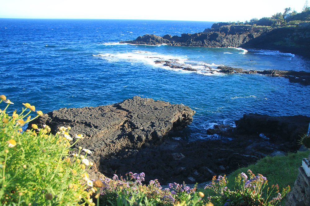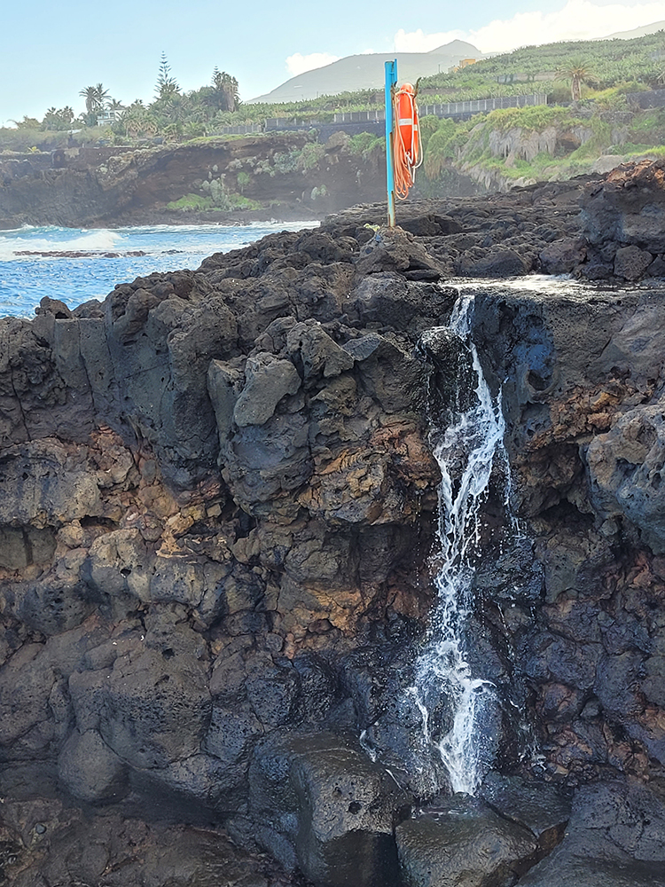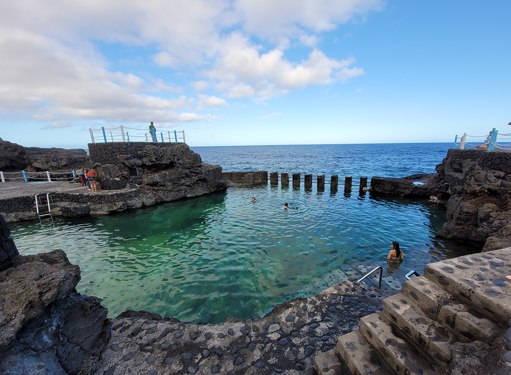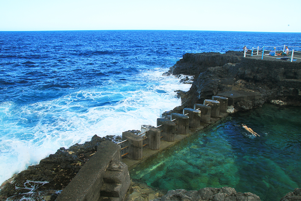 Charco Azul — типичный для островов лавовый бассейн, граничащий с океаном, но поднятый над ним.