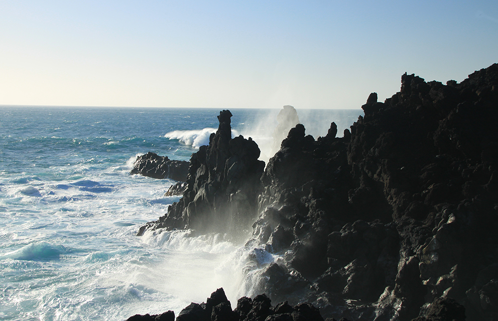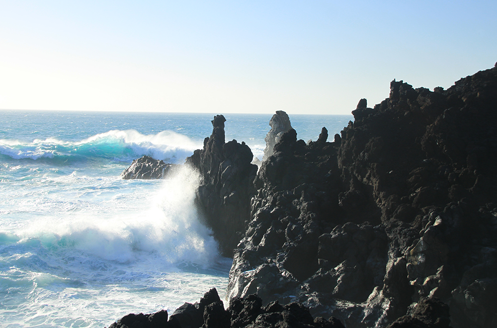 Человек такой зашел по колено, и думает — успел ли он завещание написать? Мы даже не стали пробовать, вокруг острые лавовые выходы, купаться тут можно только при тихой погоде.