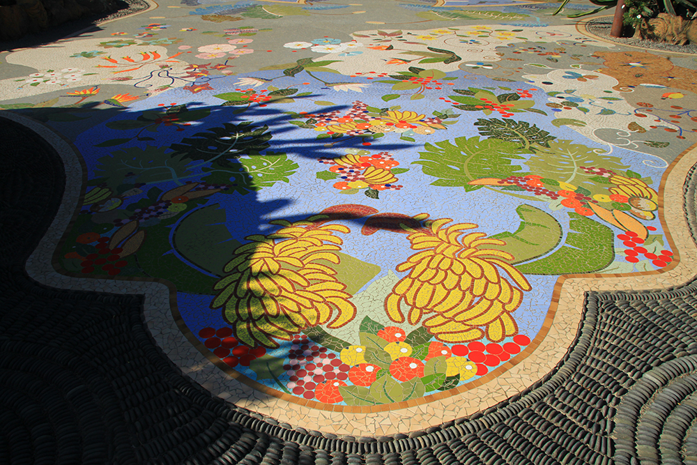 Эти зеленые объемные плюшки, наверное, изображают местные каменные розы гигантских размеров.