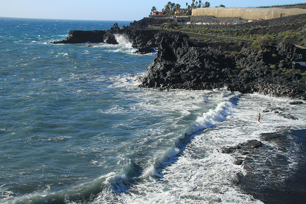После этого мы посмотрели на карту и углядели на ней название Charco Verde. О, чарка, там, должно быть, можно искупаться. Поехали туда, но это оказался почему-то пляж. При южном ветре там были очень впечатляющие волны.