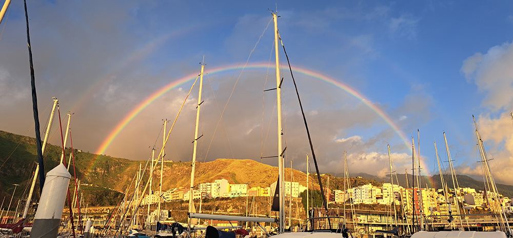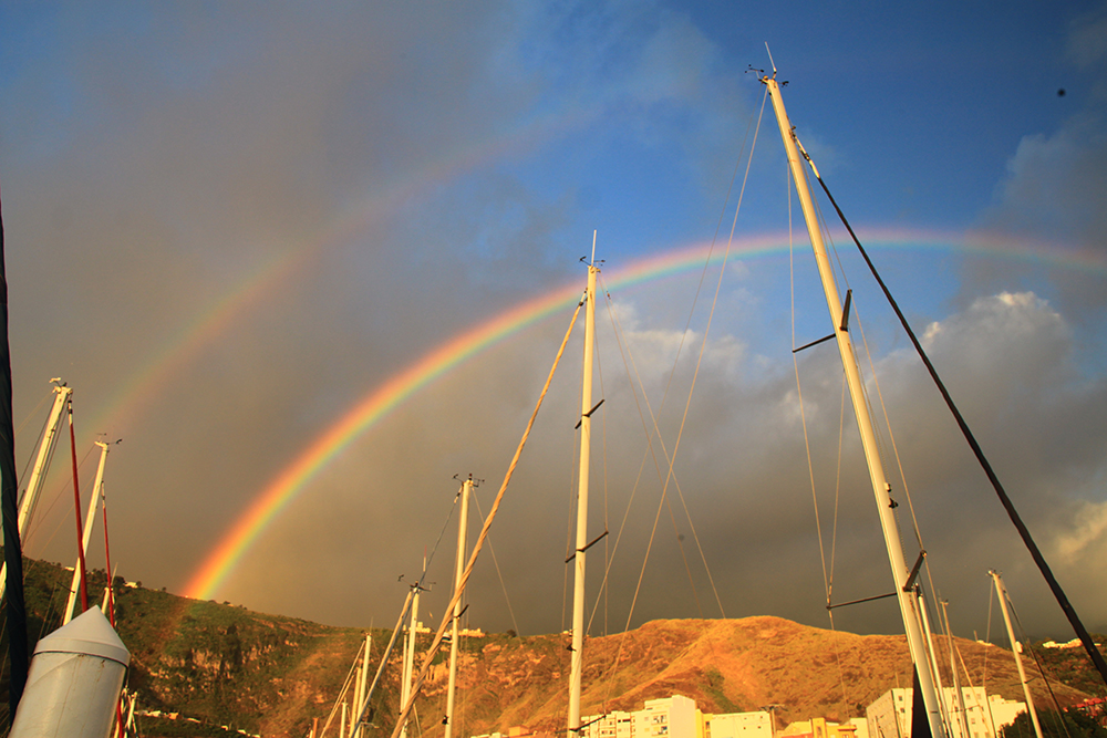 Утром в марине показывали двойную радугу.