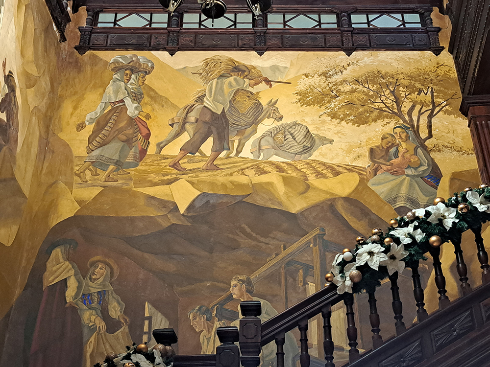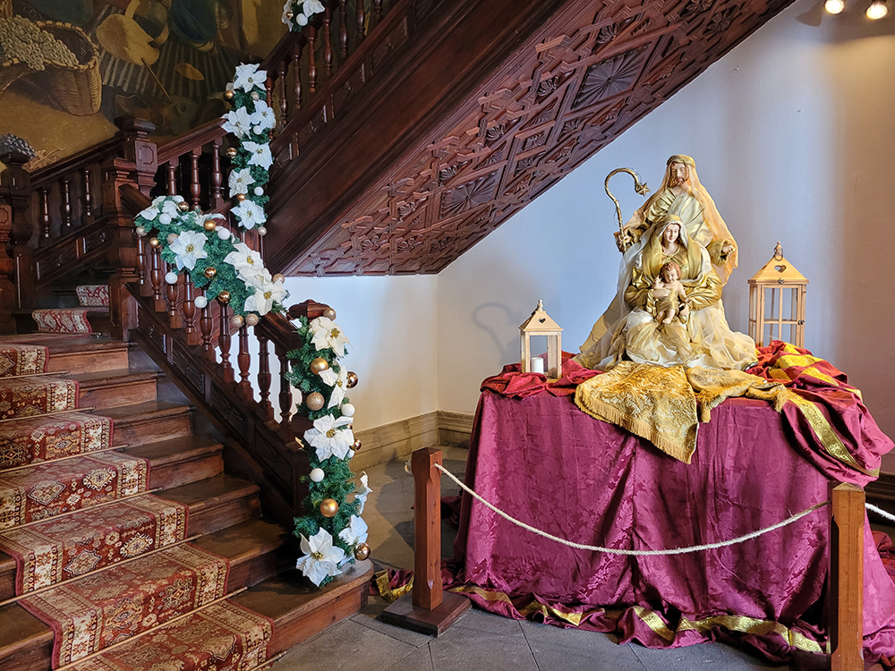 Недавно было Рождество, мини-вертеп устроили под лестницей.