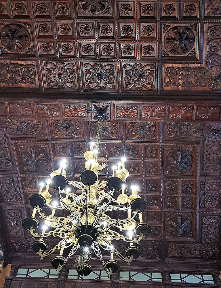 Потолок своей роскошью подобен лестнице, тоже все резное.