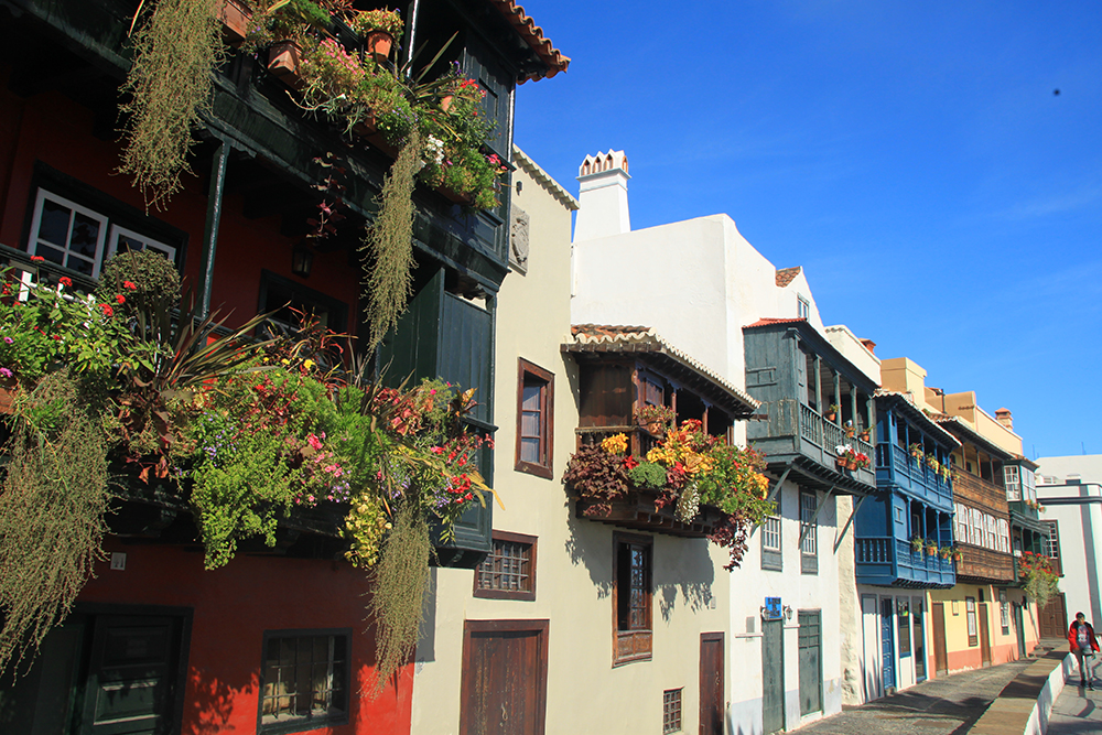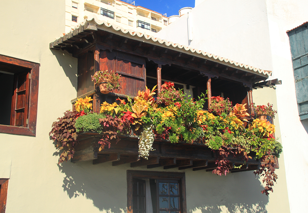 Это традиционные канарские деревянные балконы. Тут они просто прекрасны, их специально украсили цветами. Целая улица с балконами вдоль набережной.