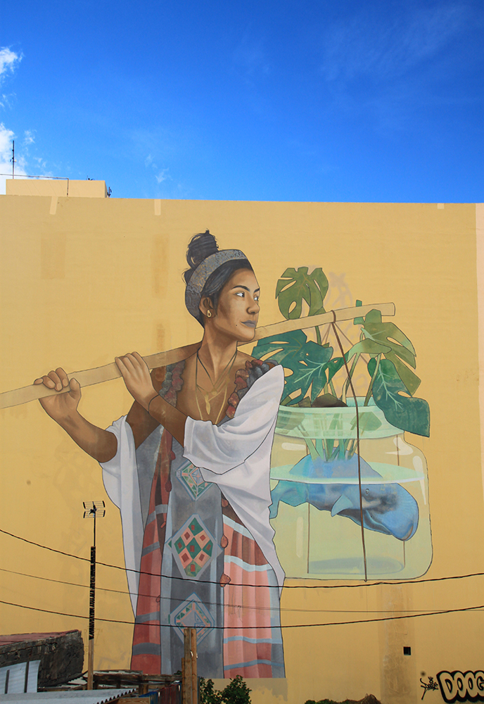 А на стене рядом интересный мурал.