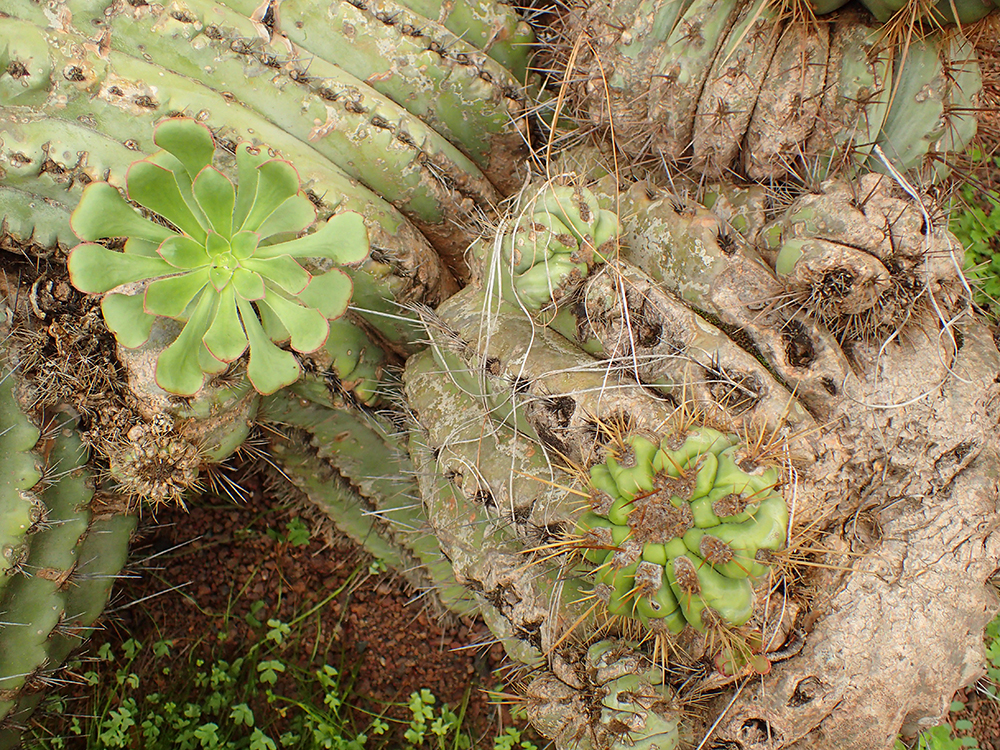 Каменная роза укоренилась в кактусе. И ест его.