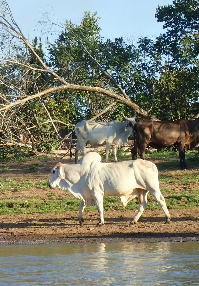 По берегам реки пасут коров, и коровы тоже весьма интересные.