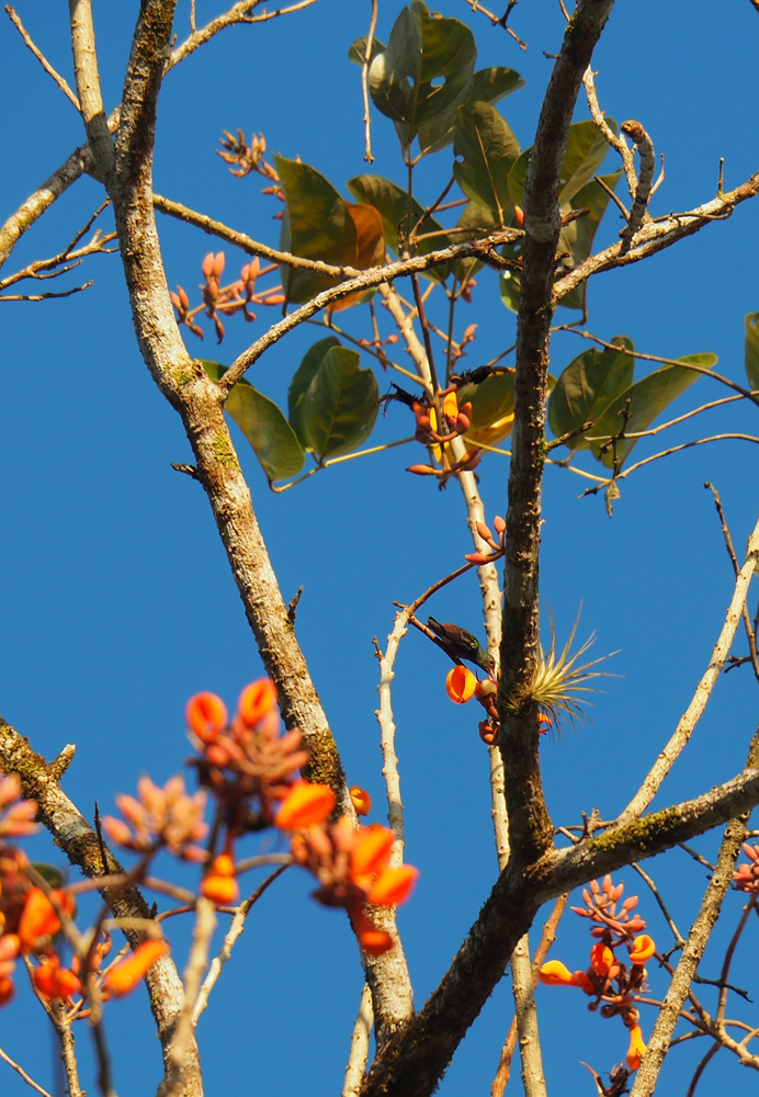 В конце экскурсии мы выбрались на берег и пошли смотреть на сыча, который из-за сумерек совсем не получился на фотографиях. Но по дороге мы видели колибри.
