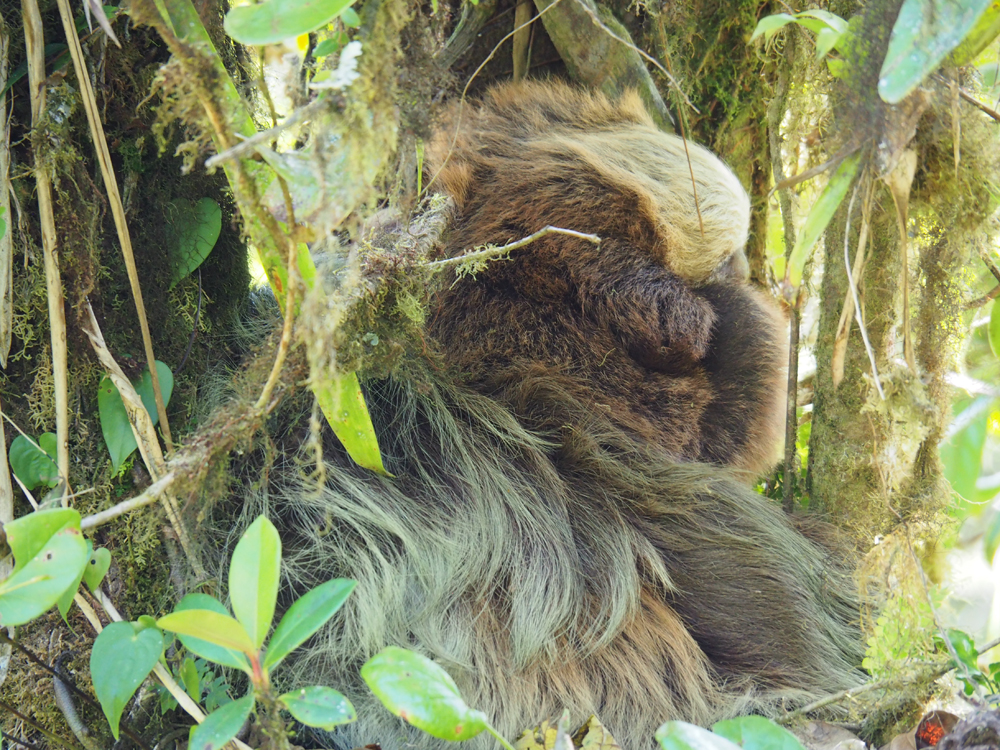 Просто комок шерсти в развилке дерева, да еще и позеленел от неспешной жизни. В шерсти ленивцев заводятся сине-зеленые водоросли, они очень помогают слиться с окружающим пейзажем.