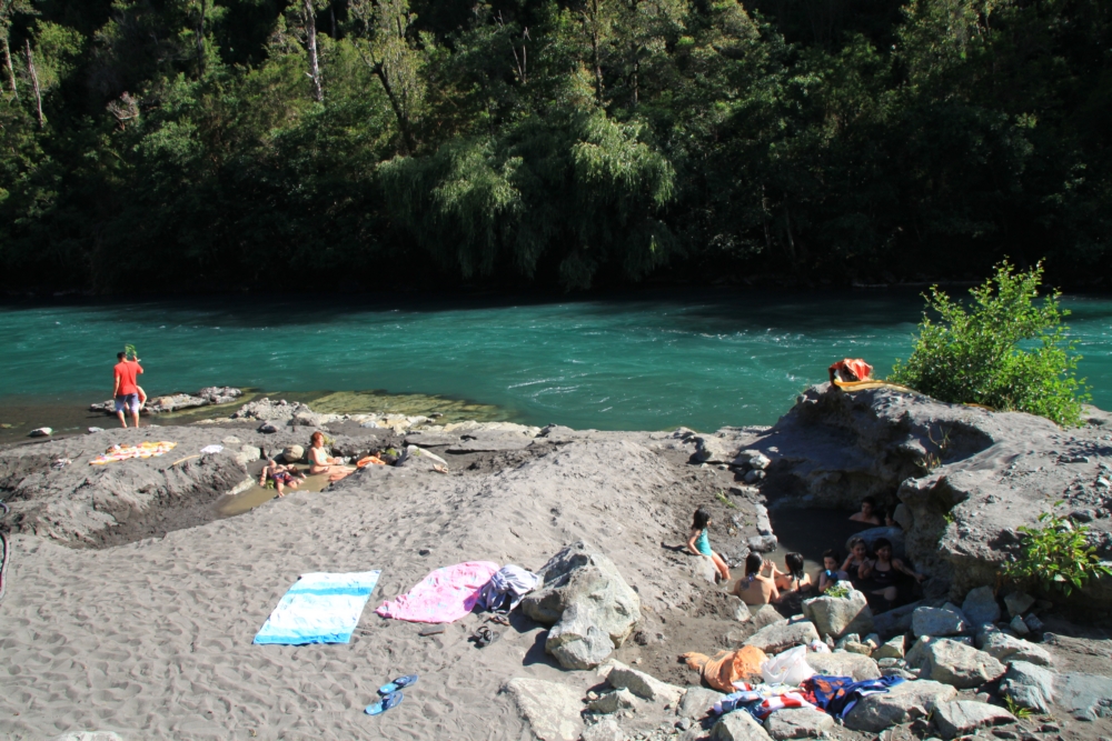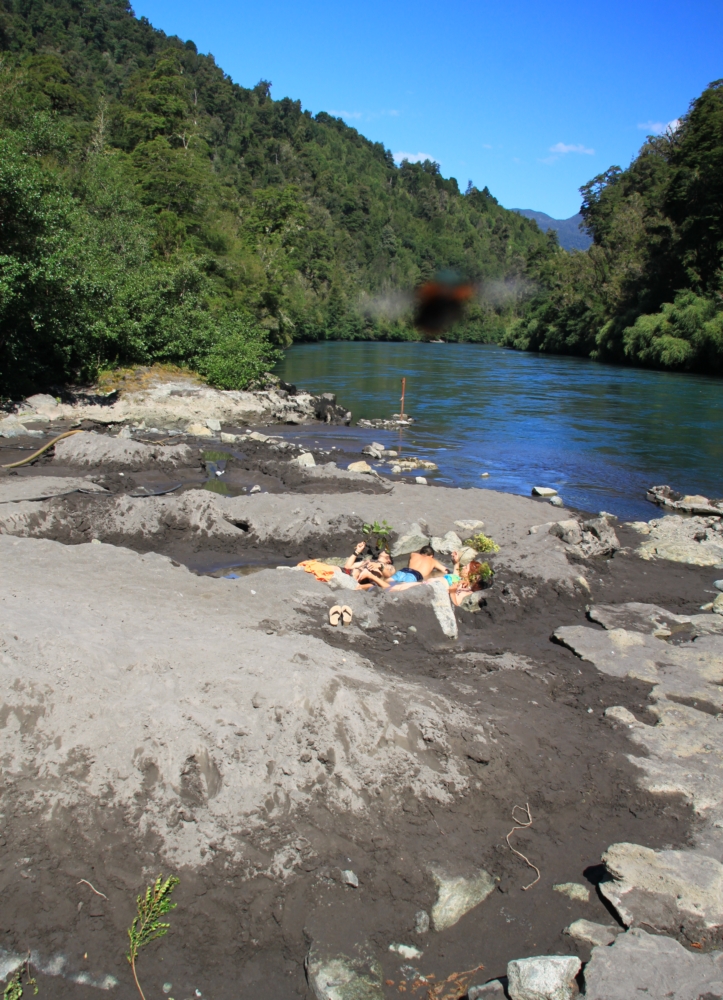 Источники представляют из себя выкопанные ямки с черной горячей водой на берегу реки. Народу в них довольно много, особенно в субботу, а ямки маленькие.