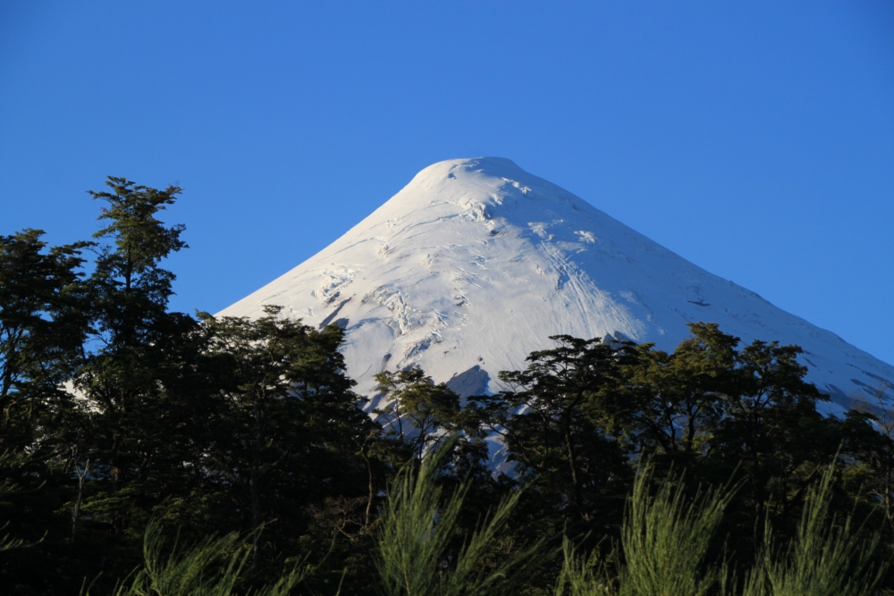 Это вулкан Осорно. Правильной формой своего конуса Осорно соперничает с Фудзиямой.