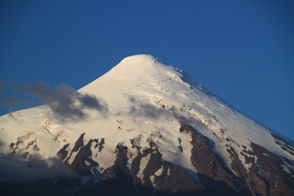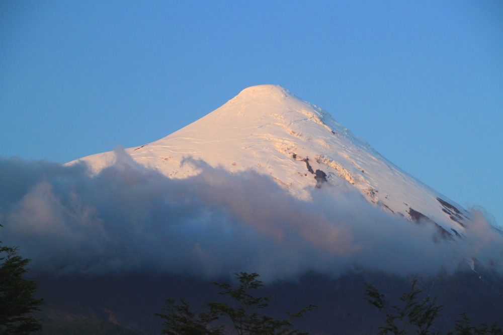 Потом мы поехали в Энсеньяду поселяться. Вулкан Осорно неожиданно выплывал и венчал собой пейзаж.