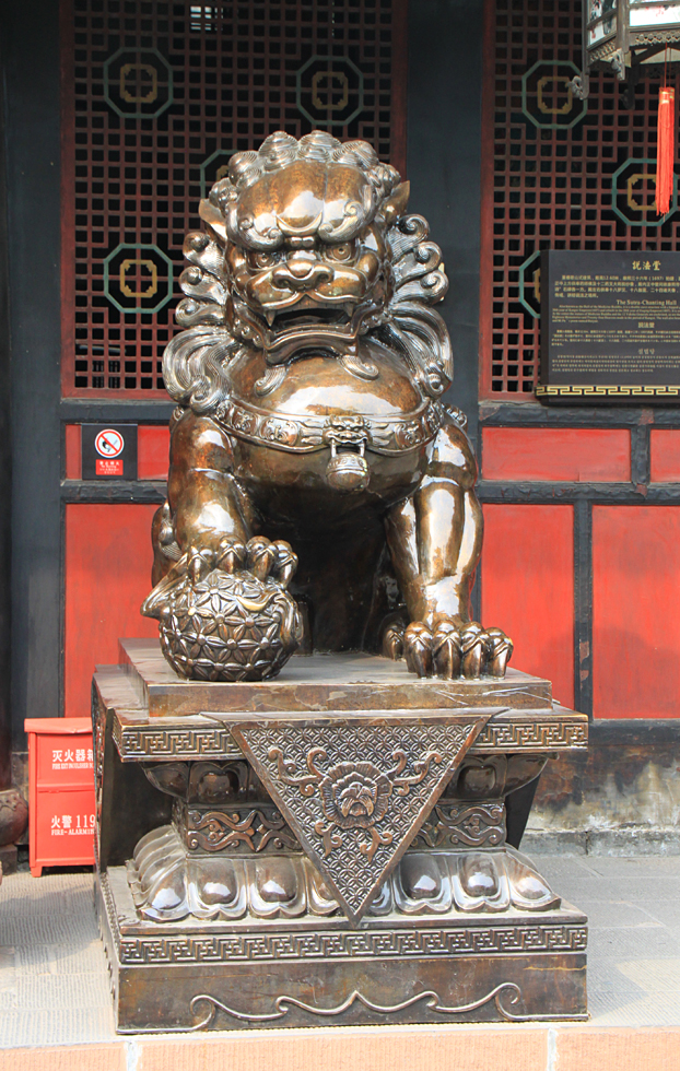 За алтарем типичный снежный лев, но бирюзовый, с выражением "Погладь кота!" на физиономии.
