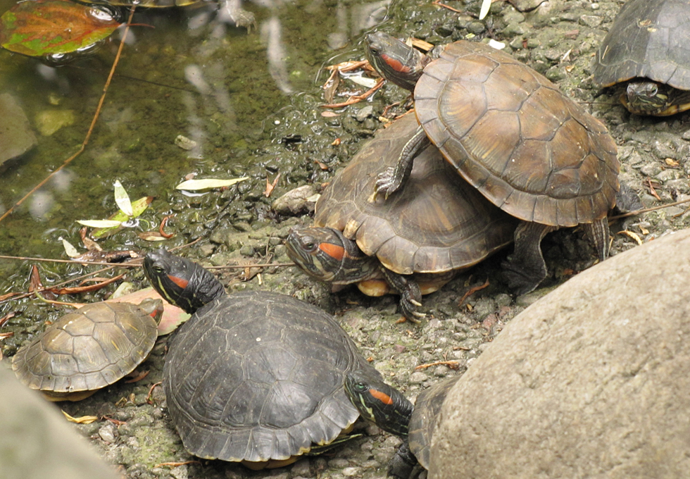 Вот тут они усажены бамбуком и стоят в воде, как положено.