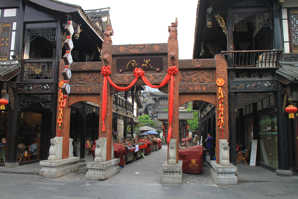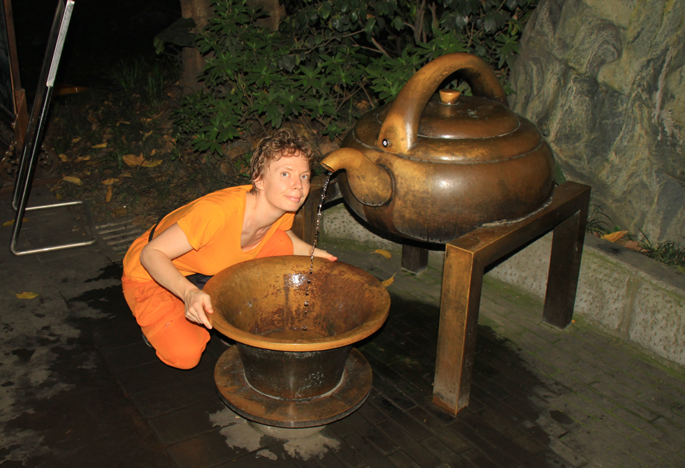 А вот чайные вечером уже закрыты. Днем на свежем воздухе стоят плетеные столы и стулья и можно попить чаю. Тут даже есть памятник чайнику.