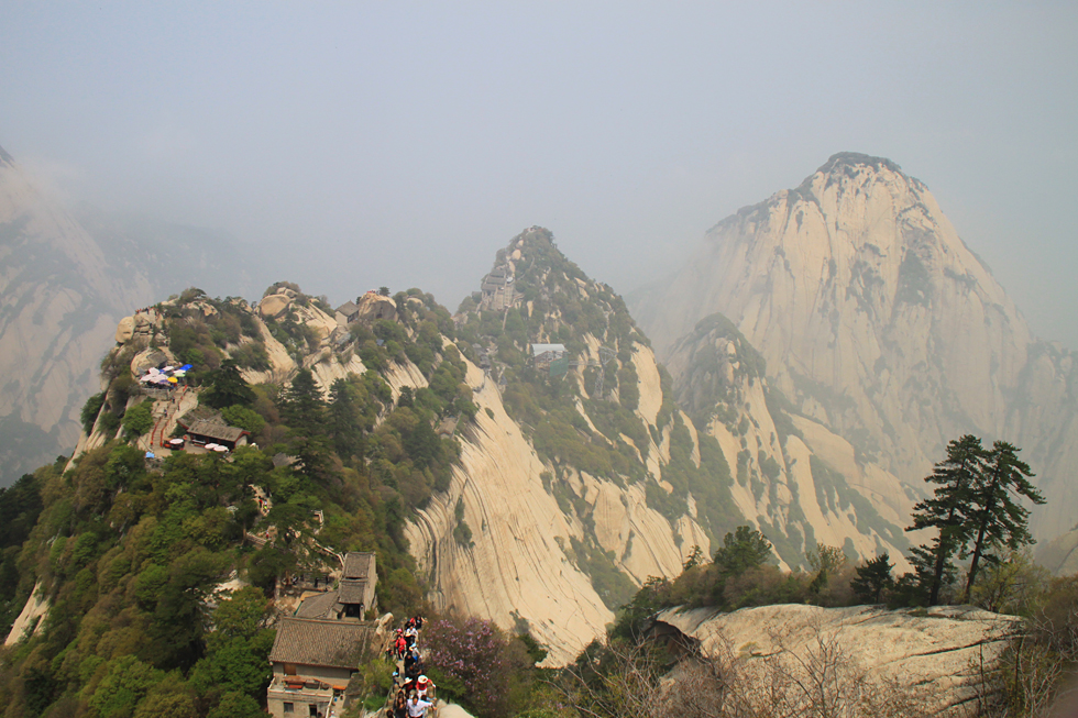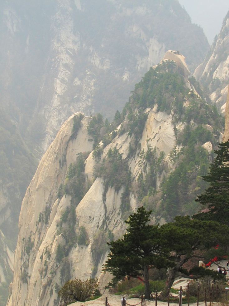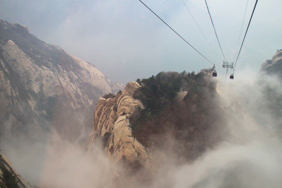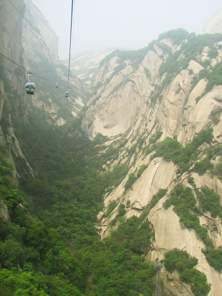 Утром наш поезд приехал из Сианя на станцию Хуашань, мы сдали рюкзаки на хранение в ближайший к вокзалу магазин и поехали к горному массиву. Юля проводила нас до фуникулера, а дальше мы скакали по горам сами.