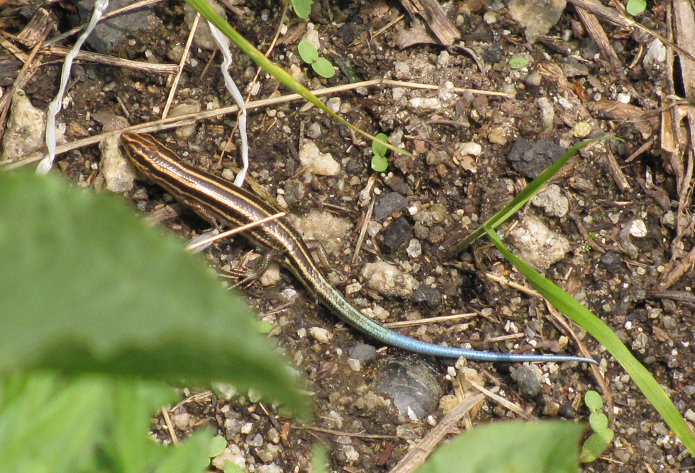 Наверху у Северного пика нас встретила ящерица с синим хвостом.