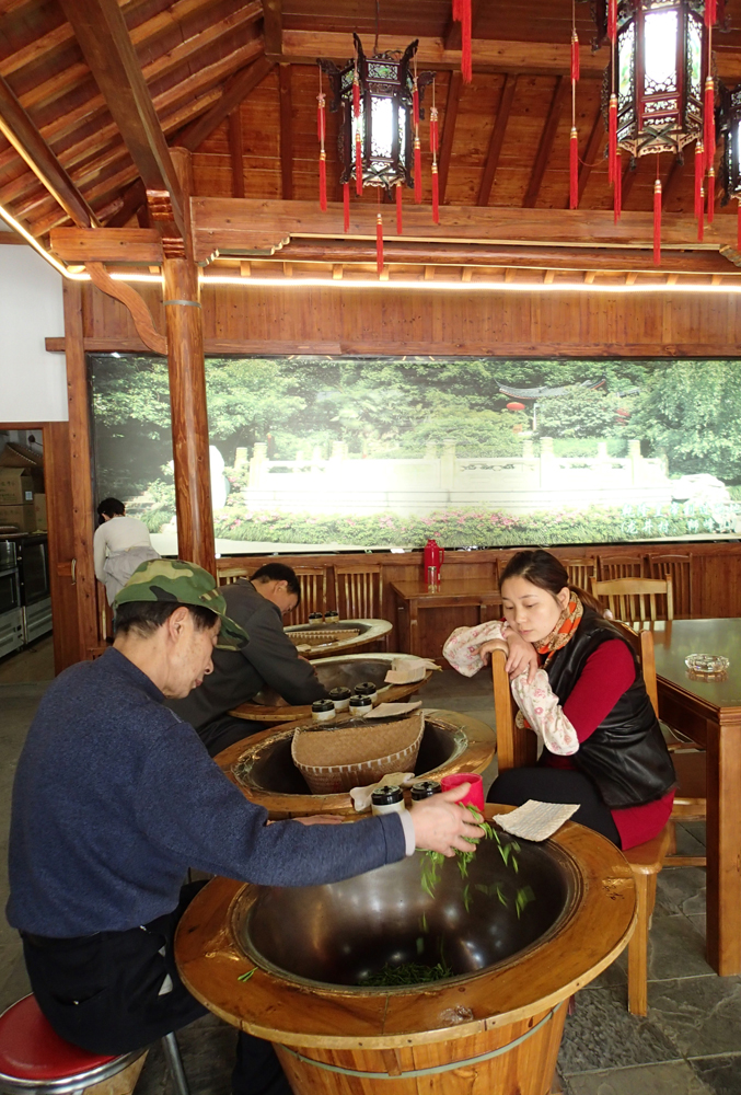 А все потому, что для чая лунцзин годятся только два маленьких верхних листочка: как они вылезли, так их и собирают. Завтра тетеньки еще придут.