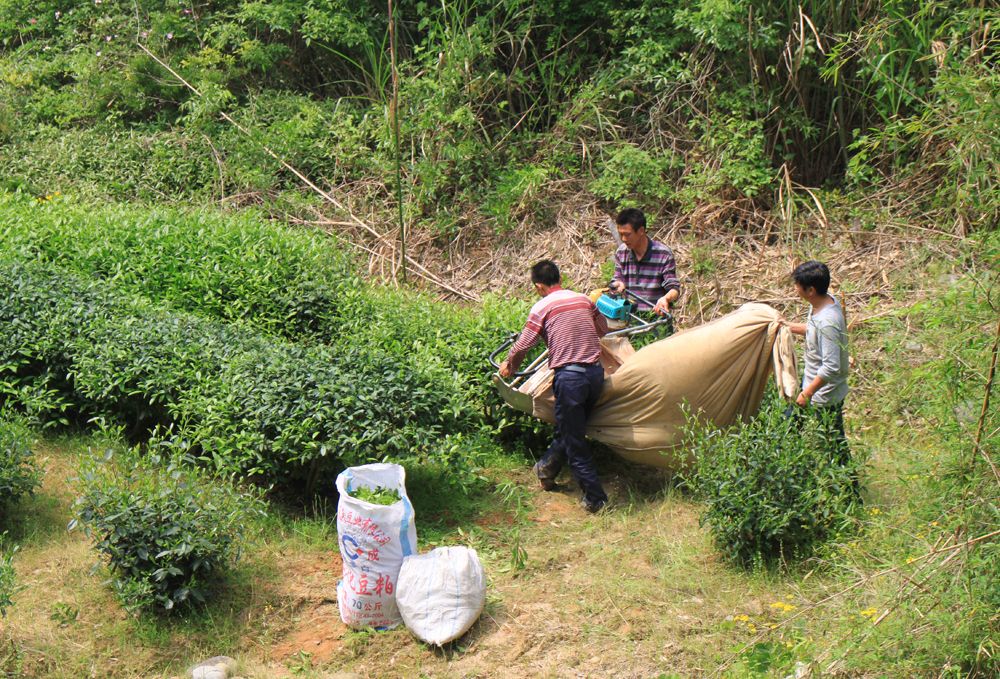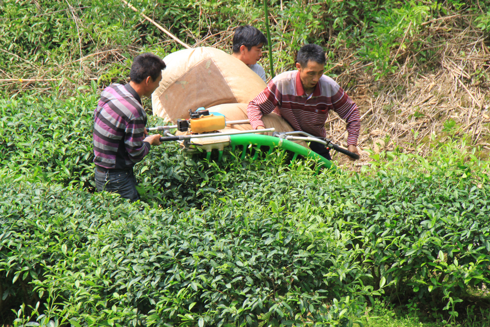 Помимо ручной сборки есть и машинная сборка — такая переносная чайная газонокосилка.