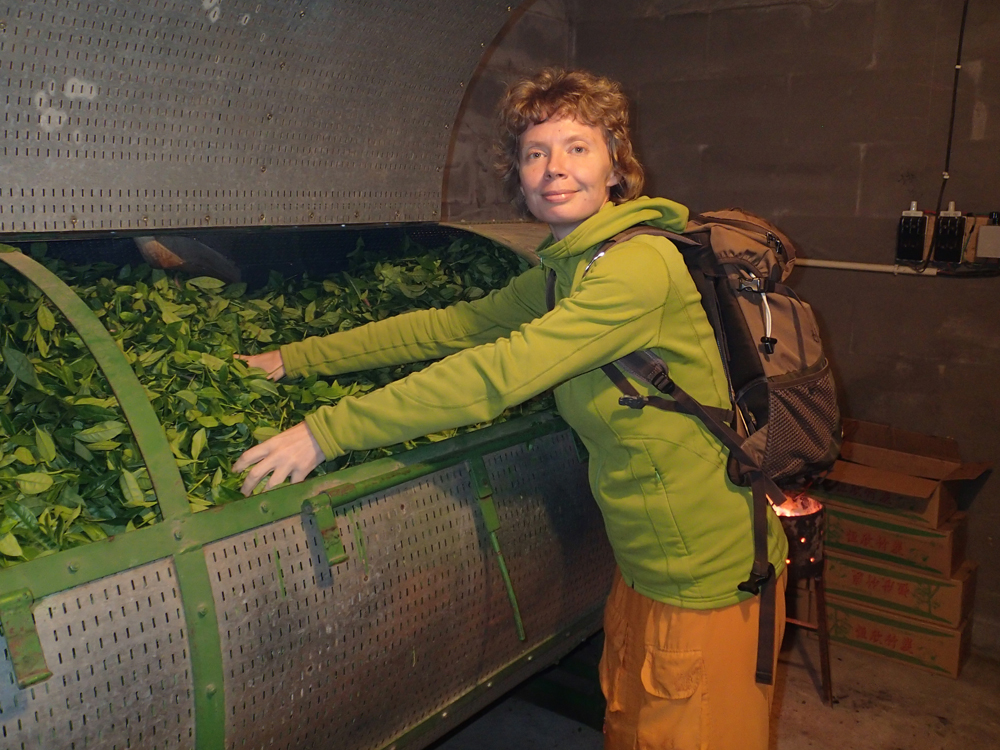 В барабан гонят теплый воздух, и теплый чайный лист пахнет потрясающе. Это вообще одно из самых прекрасных воспоминаний об Уишане — запах чая на фабрике.