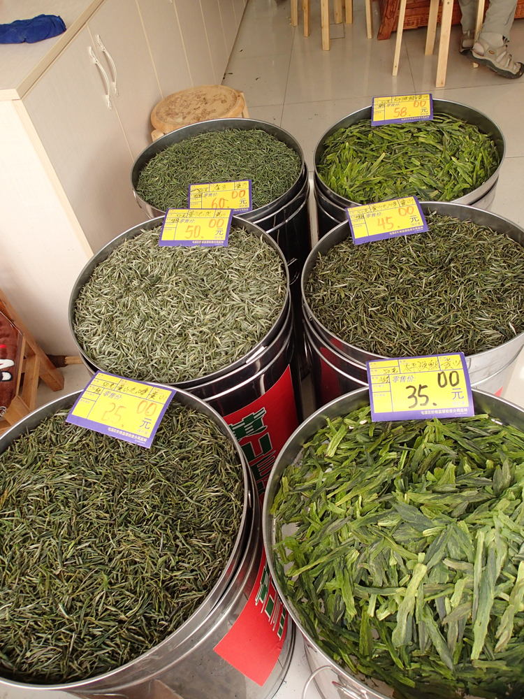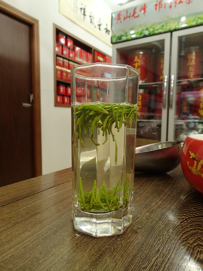 Самый интересный на вид зеленый чай здесь — тайпин хоу куй (太平猴 魁, Tàipíng hóu kuí, главарь (обезьян) из Тайпина, попроще 350, получше 600)