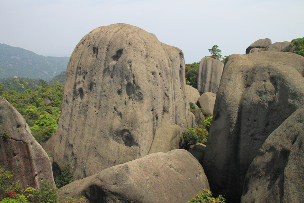 На огромных валунах видны водяные желобки. Как будто они сахарные и вода вымыла в них дорожки.