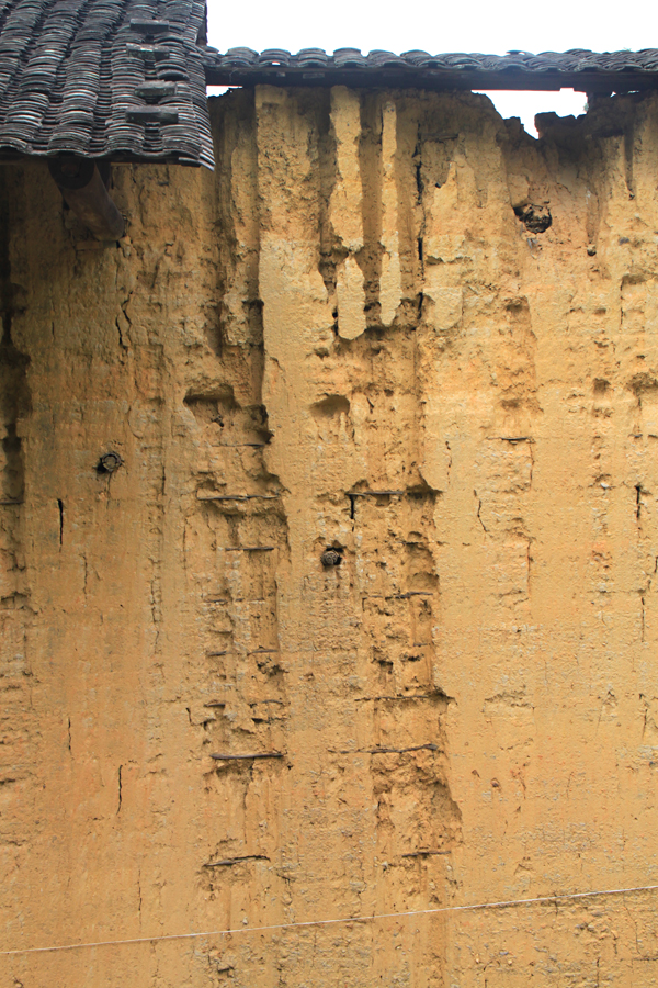 Стены строились из глины с добавлением клейкого риса, в качестве направляющей арматуры — плетенки из бамбука.