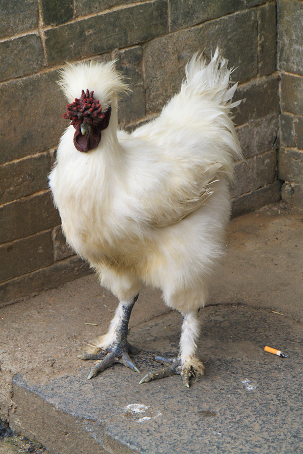 Очень декоративная курица. Она тут явно для красоты, а вовсе не в суп.