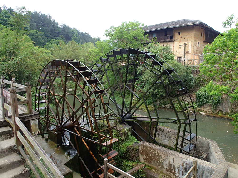 Водяные колеса в Китае реконструируют примерно как у нас — мельницы. Работать нормально они не могут, но выглядят колоритно. Одно даже крутилось. Такие колеса поднимали воду, черпая ее разломленными напополам стеблями бамбука.