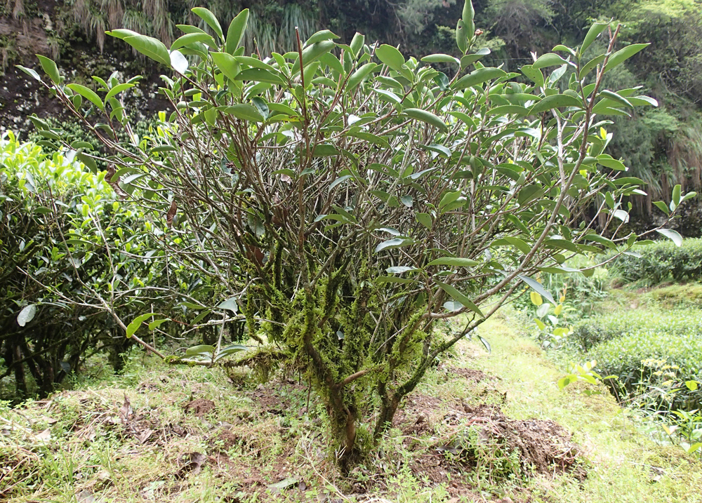 Когда чайный куст растет лет двадцать, у него появляется мох на стволе. Это особый шик, говорят, есть нюансы вкуса в чае с такого куста.