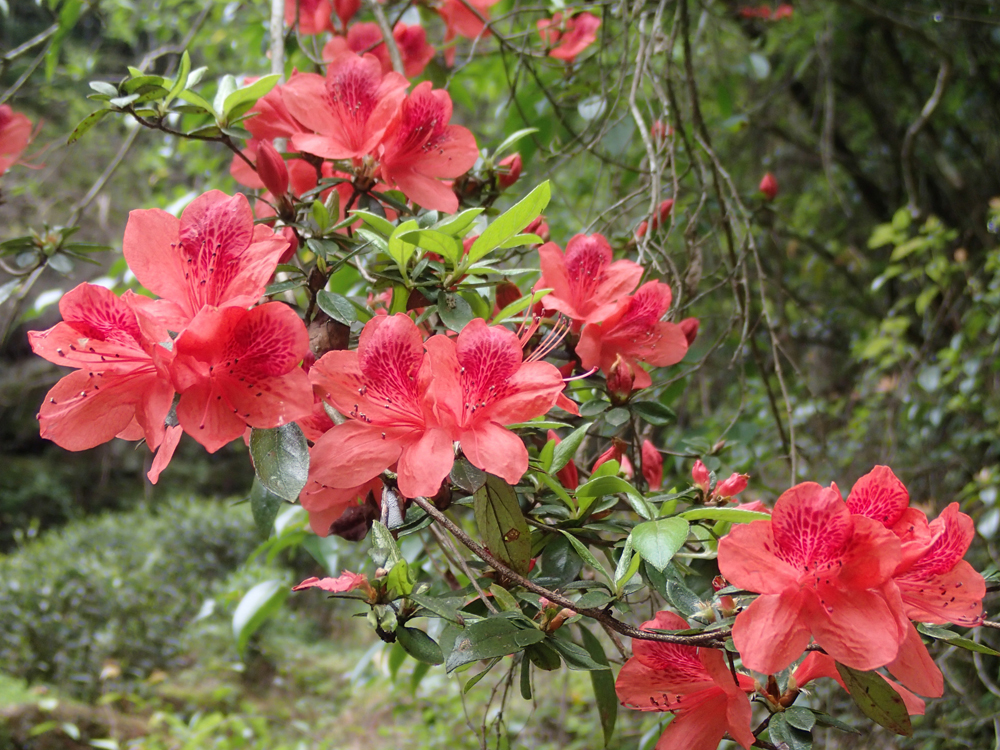 Азалии и всякие маленькие рододендроны цветут вокруг.