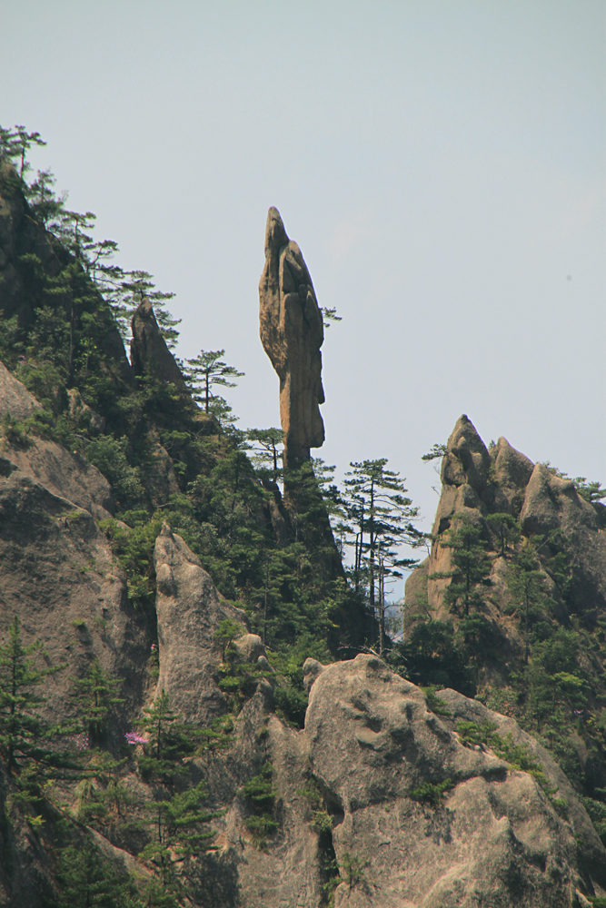 На скалах растут колоритные искривленные сосны. Непонятно, как они держатся на вертикальных скалах.