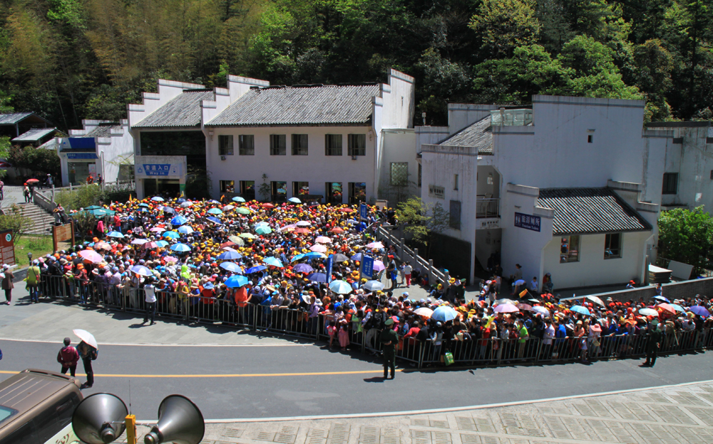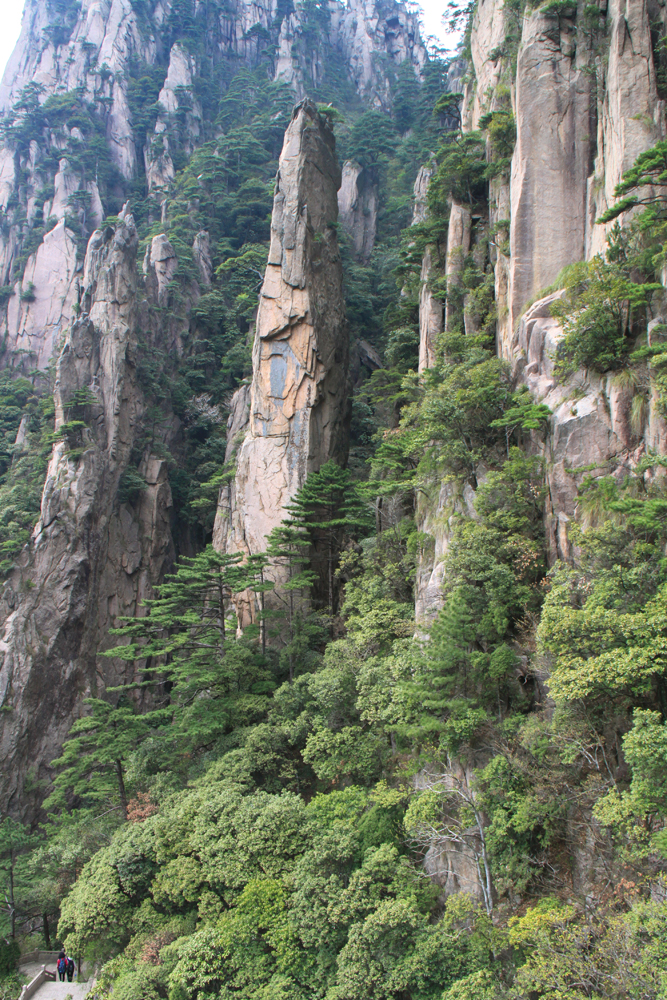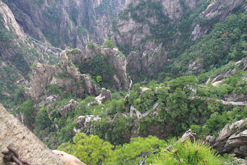 Это очередь из желающих наверх. Она, кажется, сегодня вообще не пройдет, но на самом деле это полтора-два часа, такие очереди идут быстро. Но выглядят страшно. Поэтому в нацпарках Китая всегда надо двигаться в направлении, противоположном основной толпе. Мы на спуск не стояли и двух минут.