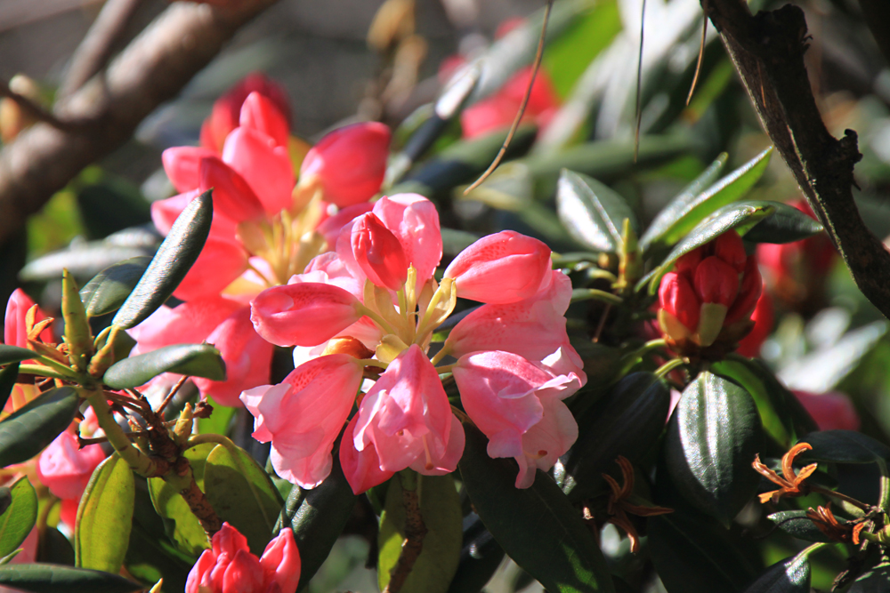 Спускаясь по бесконечным лестницам, мы достигли нижней точки маршрута. Здесь много цветов и вообще другой климат, ведь мы спустились почти на километр.