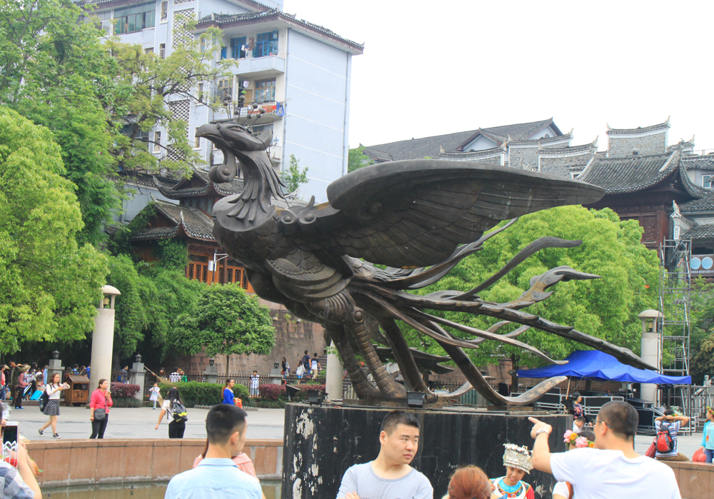 Это феникс, в честь которого назван город («фэнхуан» и есть «феникс» по-китайски). В Китае есть несколько городов с таким именем, этот наиболее известен и находится в провинции Хунань.