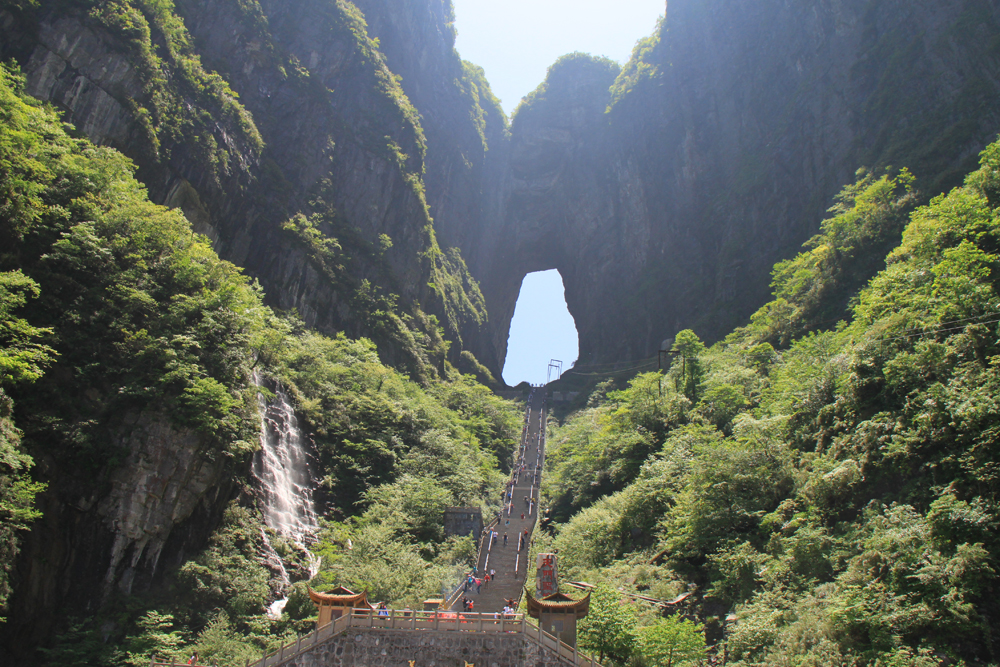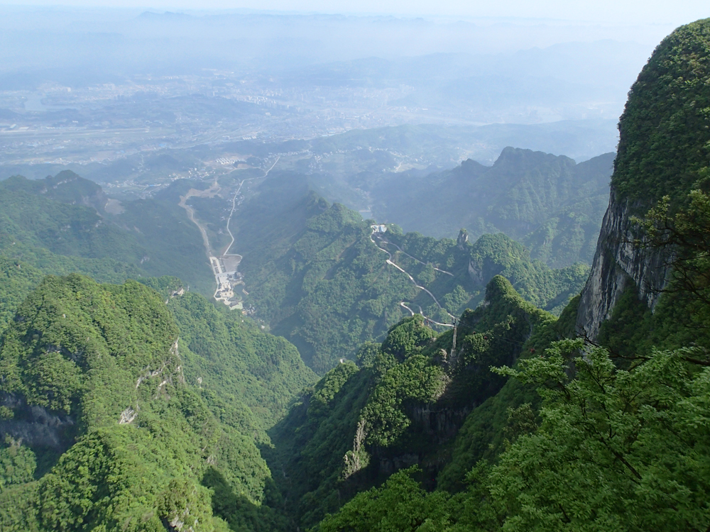 Когда мы были в этих краях прошлом году, мы поехали только в парк Аватар (Улиньюань), а гору Тяньмэнь даже не заметили. А все из-за погоды: в хорошую погоду ее видно из города и всем понятно, какая она красивая и какая классная в ней дырка. В плохую погоду фуникулер из центра города печально уходит в туманную даль непонятно зачем, так оно тогда и было.
