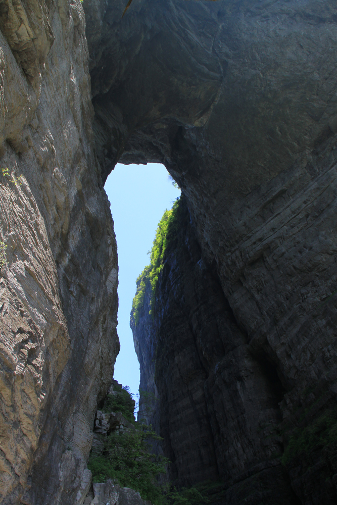 Это и есть Тяньмэнь — «Небесные врата». Тут сделали небольшой алтарь и ведутся какие-то работы по благоустройству дырки. Может быть, сделают спуск в другую сторону.