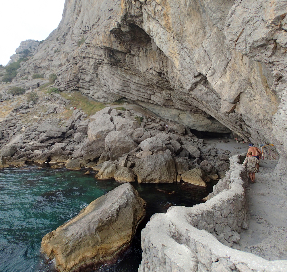 А дальше мы некоторое время купались и питались, созерцая вот эту тропку по скалам. Она чуть-чуть не доходит до грота.