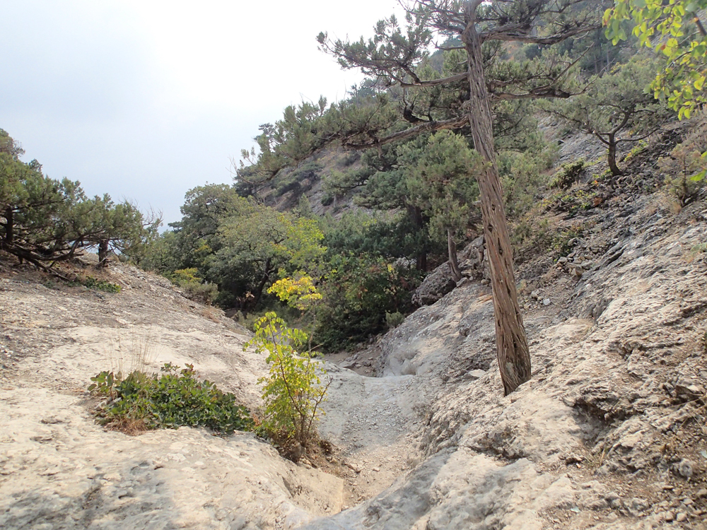 На Царский пляж мы попали, совершив крюк по местному парку и спустившись по сухому руслу реки. Весьма живописное русло.