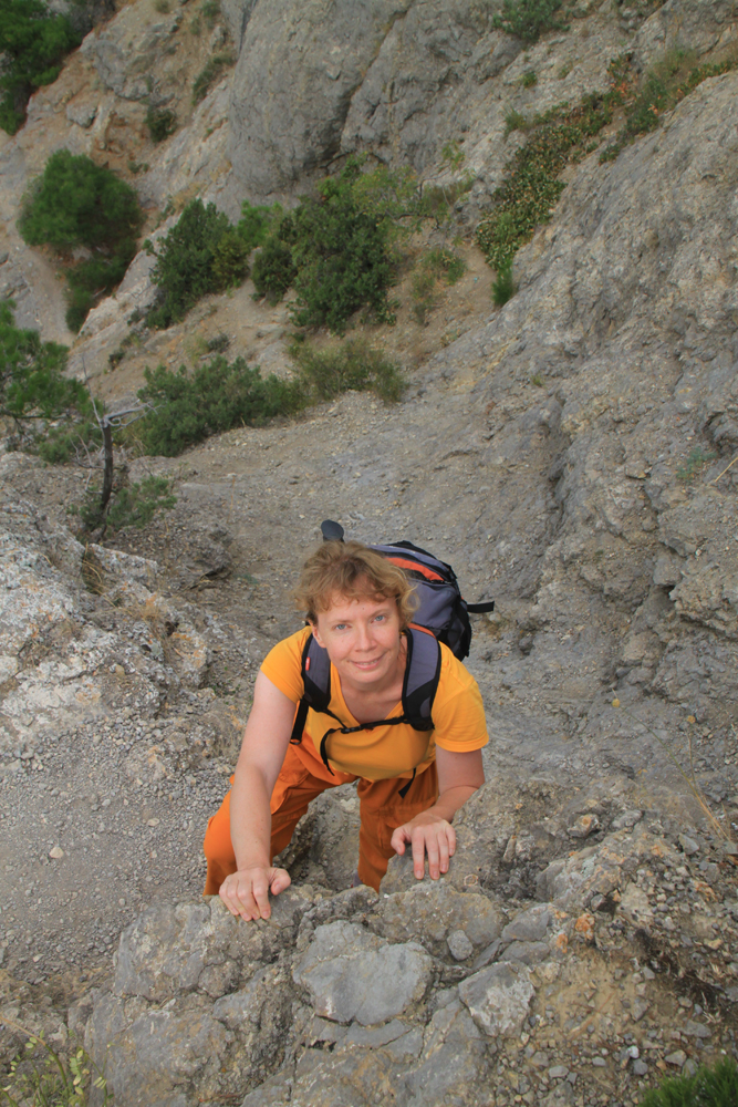Так вот, за эти годы я позанималась немного скалолазанием в режиме фитнеса, даже третий альпинистский разряд получила. И что я могу сказать? Ничего не изменилось Может, я чуть лучше лезу технически более сложные участки, зато у меня появилась ярко выраженная фобия сыпучих участков, то есть на них я психую и боюсь больше, чем надо. Так что в результате примерно то же самое. Может быть, чуть лучше оцениваю сложность и возможность залезть, и только. Так что спускались мы через ворота, потому что с ключа реально можно навернуться. :-)