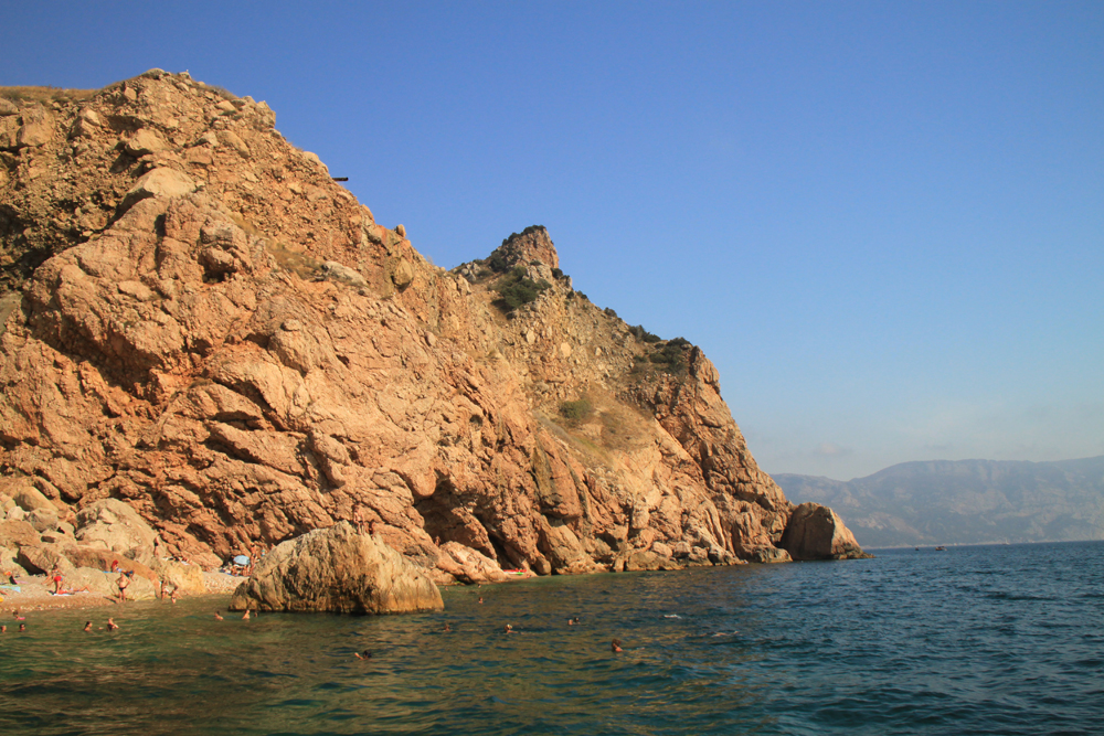Я, правда, в таких местах сразу начинаю искать тень. Нашли маленький гротик в скалах и забились туда. В гроте было сыро, зато не так жарко и не было опасности сгореть на солнце.