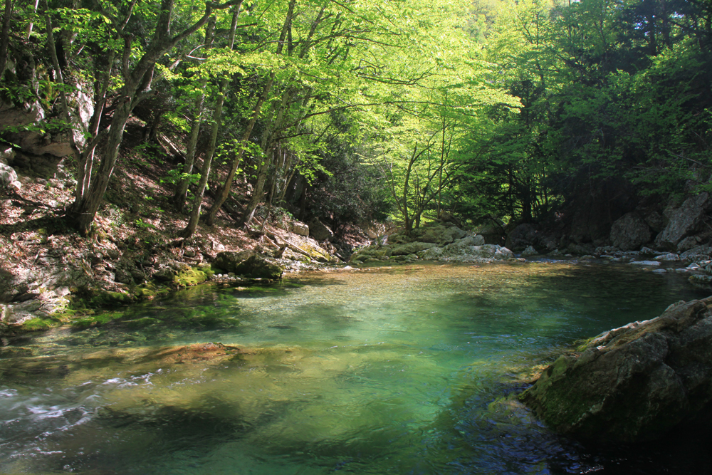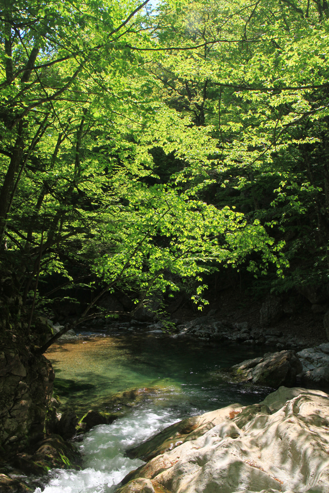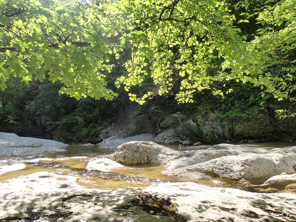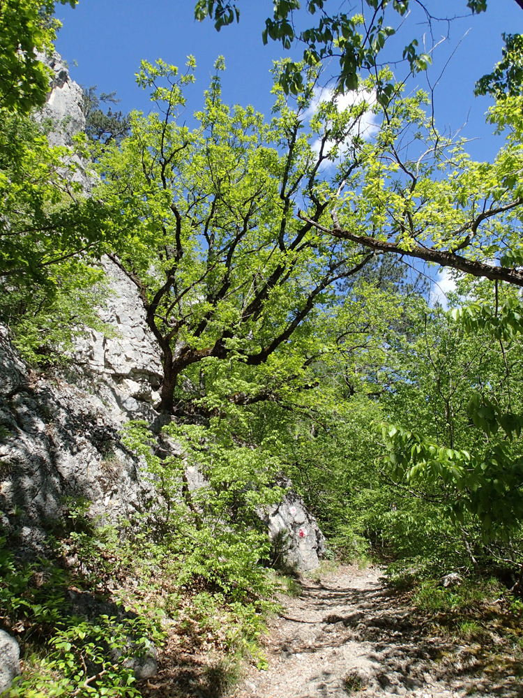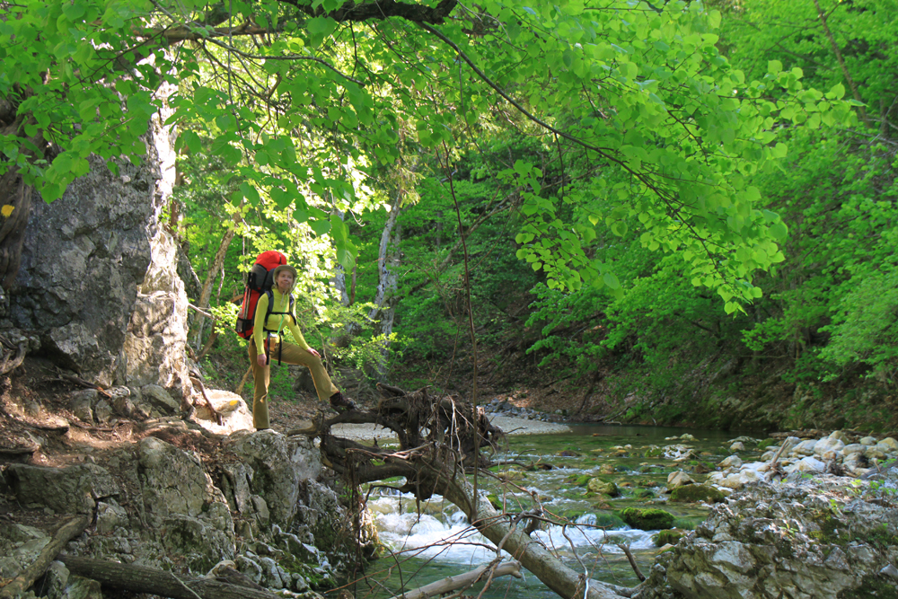 Тропинка спускается в каньон возле Голубого озера, а потом идет дальше вверх. Но нам захотелось пройти по каньону до Ванны Молодости, а потом выйти обратно. Мы надеялись забраться в каком-то другом месте на стену каньона, но это сложновато с рюкзаками. Оттого вместо расчетных девяти километров мы вечером насчитали 12.
