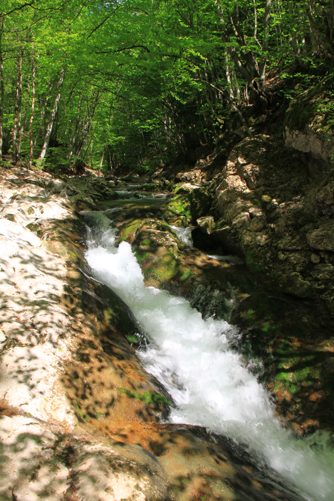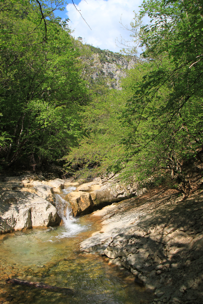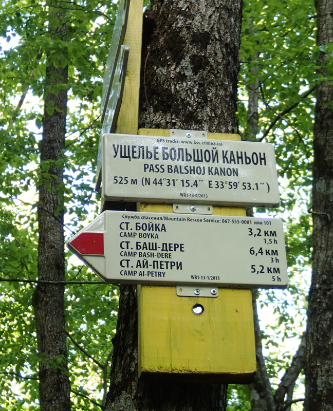 Потом мы съездили в МЧС и зарегистрировались (1 поисково-спасательное отделение, работает круглосуточно. Симферополь, улица Кечкеметская, 103; телефон +7 (978) 738-22-32). Там работают весьма вменяемые люди, у которых можно проконсультироваться по стоянкам, наличию воды в родниках и ее качеству. Вообще-то мы зарегистрировались, чтобы быть официальной группой и отмахиваться бумажкой от вымогателей, про которых неоднократно слышали от других туристов. Но бумажка оказалась не нужна: со сменой власти деньги за стоянки в горах требовать перестали.