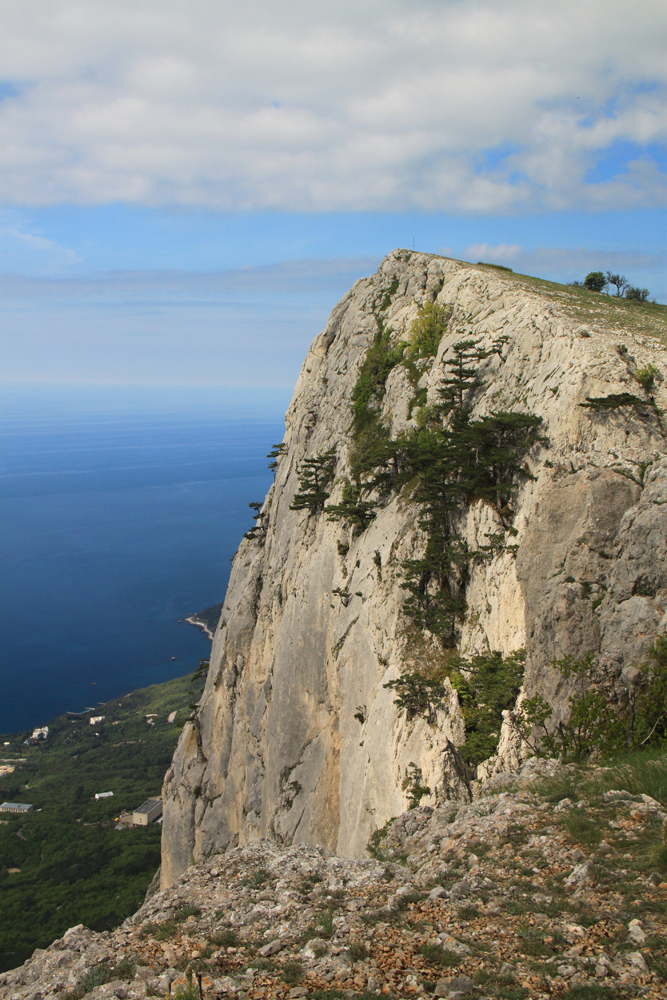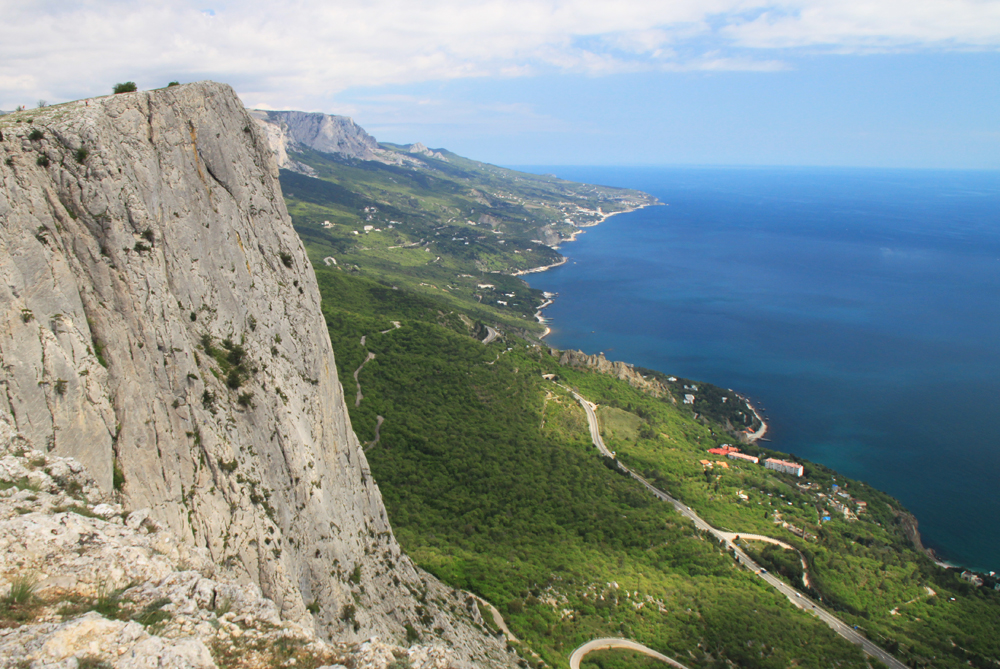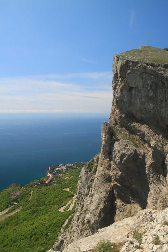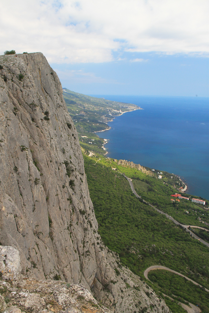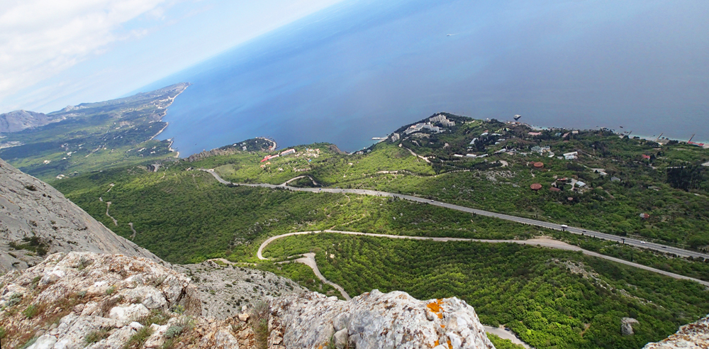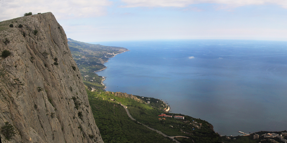 Форосский кант прошли по пасмурной погоде. Тут бывает, что облака висят над горами, а над морем — ясно. Получается примерно вот так.
