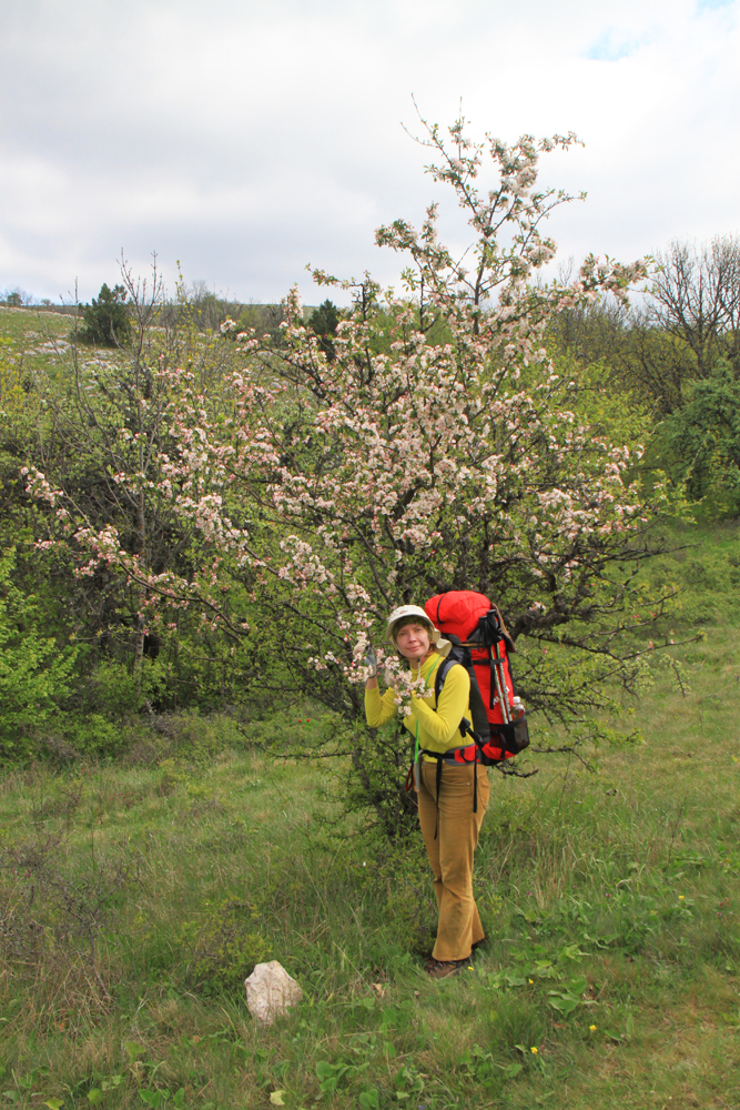 Вот только прогноз погоды не обрадовал: вожделенная дневка отменялась из-за обещанных 4–5 мая дождей. Решено было вместо дневки налегке сбегать на Чатырдаг, а потом сразу идти на вторую часть маршрута. Ноги вечером мы помассировали и густо обмазали мазью: лиотоном суставы, никофлексом — мышцы (наконец-то он пригодился!) На следующий день было гораздо лучше :-)