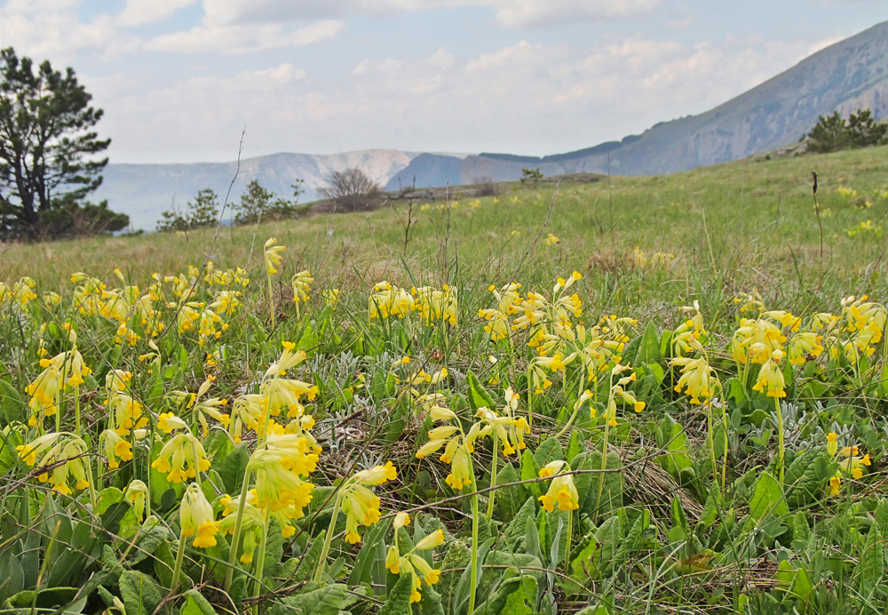 Вокруг росли поляны примул.