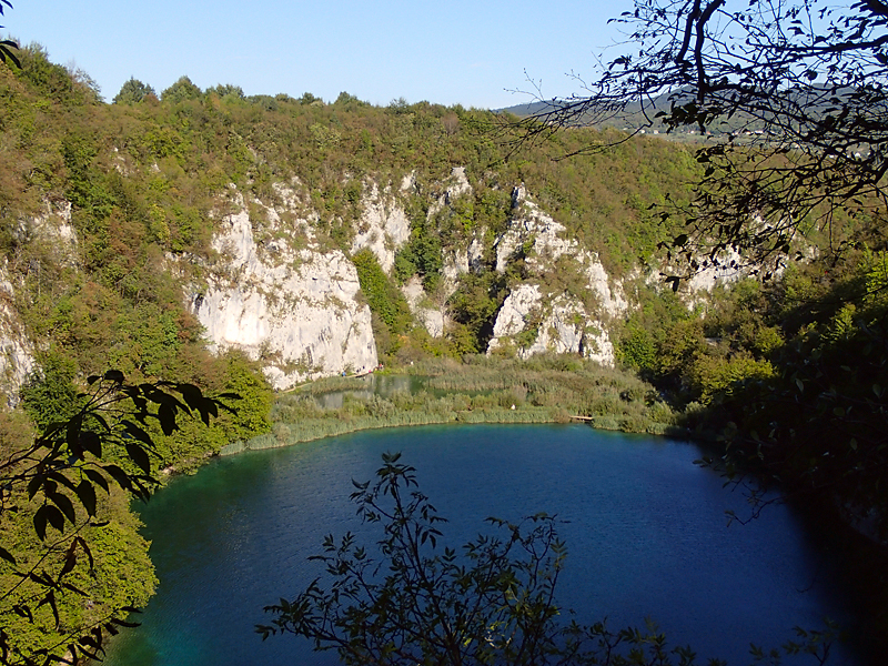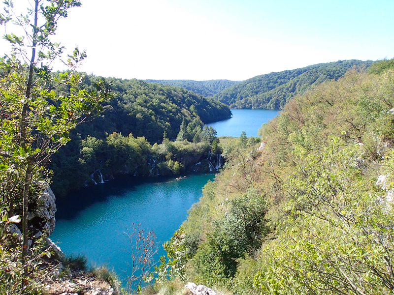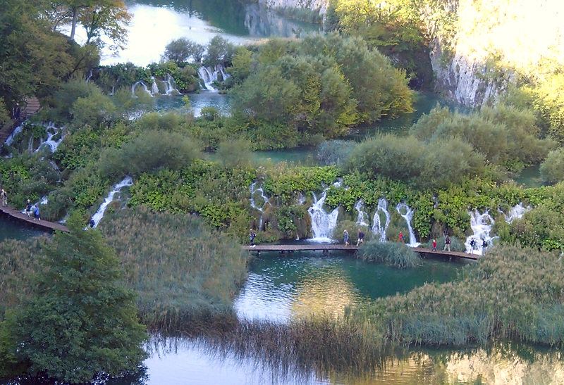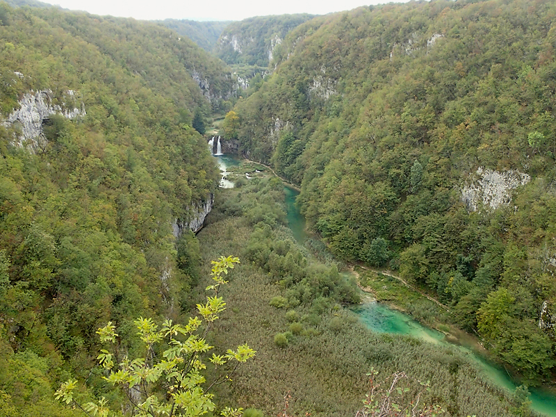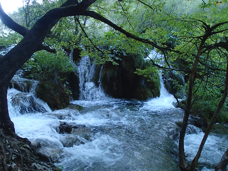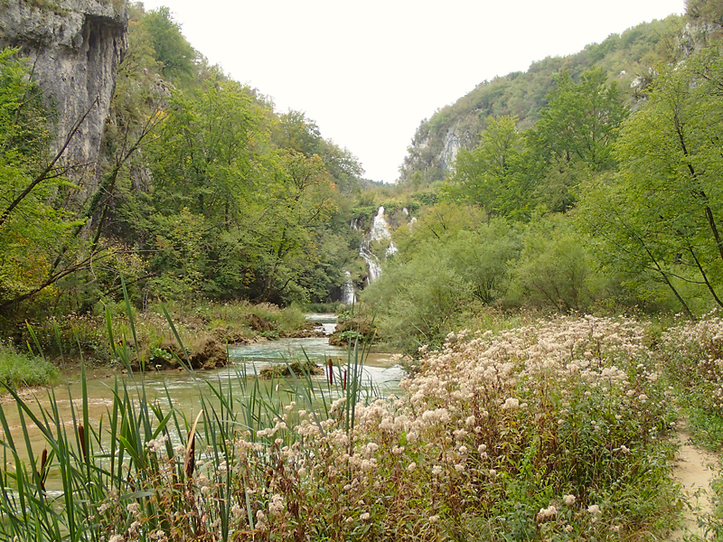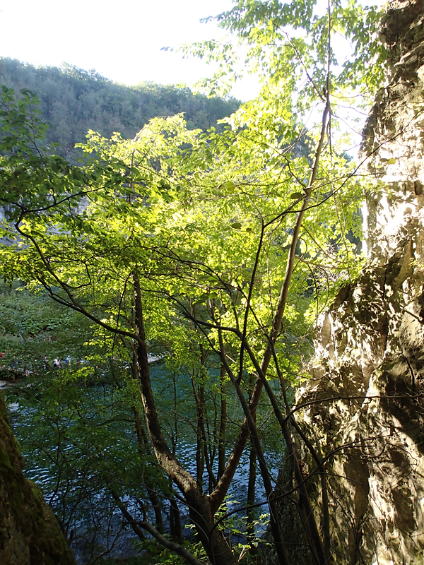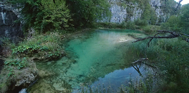 Но увы, это уже за пределами оборудованной территории, в ущелье Корана. Мостков нет, тропинок нет, нужна лодка. Я попыталась пролезть хоть немного вниз вдоль реки. И в процессе этого сильно зауважала тех, кто сделал парк Плитвицкие озера доступным для посещения, построив мостки над водой и тропинки. Без них двигаться очень, очень сложно. Я быстро отказалась от этой затеи.