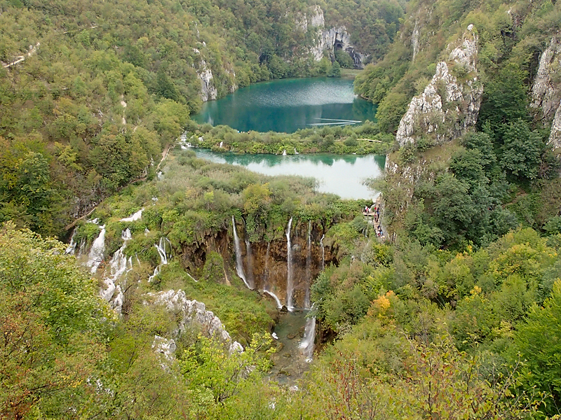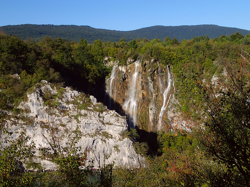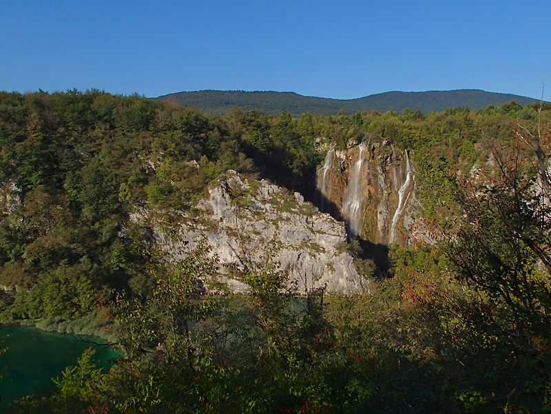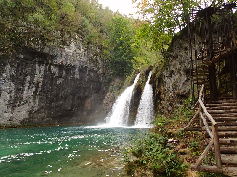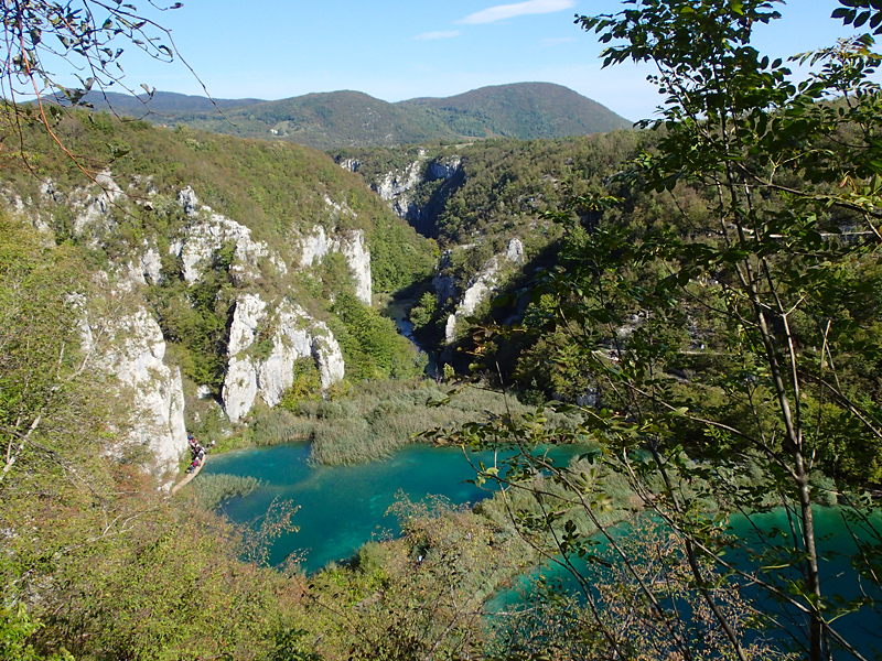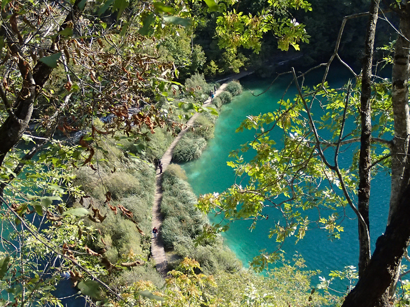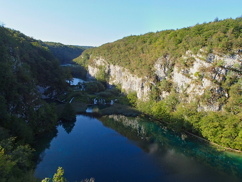 Но увы, это уже за пределами оборудованной территории, в ущелье Корана. Мостков нет, тропинок нет, нужна лодка. Я попыталась пролезть хоть немного вниз вдоль реки. И в процессе этого сильно зауважала тех, кто сделал парк Плитвицкие озера доступным для посещения, построив мостки над водой и тропинки. Без них двигаться очень, очень сложно. Я быстро отказалась от этой затеи.