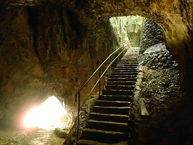 Увы, путь внутрь горы перекрыт крепкой решеткой с замком, но за решеткой тоже есть ступени и, возможно, когда-то пещера была доступна для посещения.