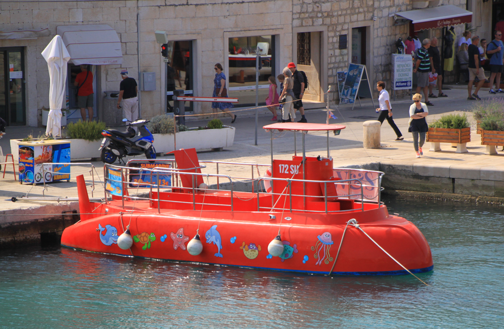 Мы потом много где такие видели. Это действительно лодка с частично прозрачными стенками для обозрения подводного мира. На ней экскурсии возят. У меня возникал вопрос, что же там смотреть: Адриатика — это вам не Фиджи, подводный мир тут довольно беден, за исключением очень отдельных мест. Но туристам, судя по всему, нравится.